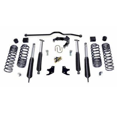 It includes application-tuned, military-wrapped leaf springs to improve suspension performance. Intended for Jeep Wrangler YJs (1987 to 1995), the kit contains all necessary components and hardware.